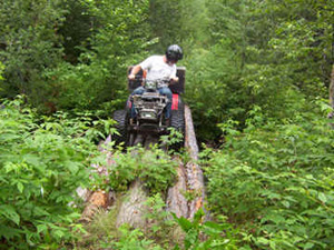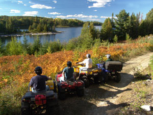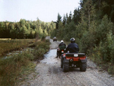 Neither us nor any other business in the Temagami area have ATV rentals at the present time. Although we have countless miles of great trails to ride on, I cannot get other lodges interested in forming an "official" ATV club, formatting a trail map of the area and then promoting the region as a major motorized tourist destination. If my vision ever becomes reality, you can bet that I will be the first lodge in this area to offer ATV rentals. In the meantime, bring your own machines and enjoy the wildlife viewing opportunities, the scenery and the trails that are already on the 31M4 map described above or any of the countless other trails that we can "pencil in" for you and your friends as you'll probably be the only ones riding them.