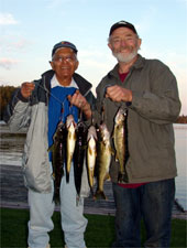 Winter ice fishing starts after mid December (or when the ice gets thick and safe) for whitefish (season on this species is open all year) and starts on February 15 and continues through to March 15 (new opening/closing dates now in effect) for lake trout. Northerns and walleye, some up to 15 lbs. or 7 kg., are common at this time of year and their season closes from March 15 through to the May 24 weekend. Although not a common winter catch, ling are delicious either right from the frying pan or fresh out of our smoker. The season for ling is open all year but they are usually caught through the ice.