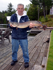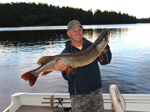 One other thing that I have noticed in all the years of owning this lodge (since '86) is that we never seem to catch many male pike. There's lots of pike here but males are far and few between. On a typcal year, we might catch 1 or 2 but for most years, there are zero males caught. I've asked and nobody has a reasonable answer to this question for me. How do you tell a male pike from a female? It is surprisingly easy to do. Probably all the pike that you have ever caught are females which are extremely slimy and slippery....and smooth under all that slime. Males are slimy, slippery ... and rough as sand paper. I urge all guests to release all of the males, irregardless of size, so that they can mate and future generations can then enjoy the quality fishing opportunities that we have today. Now wasn't that easy?